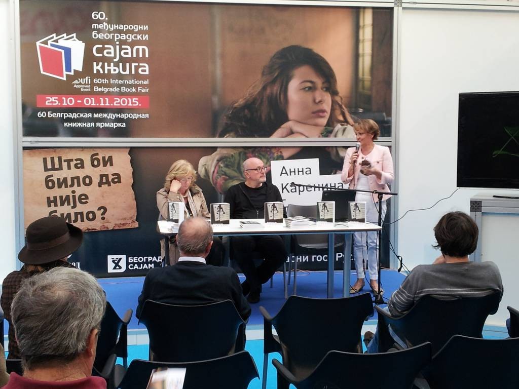 Potovanje na beograjski knjižni sejem se je začelo kot v kakšnem avanturističnem romanu – s prijateljico sva se s pomočjo spletnega portala, ki objavlja mednarodne prevoze, znašli v majhnem avtu skupaj z travmatiziranim in anesteziran psom, ki so mu v mladosti prerezali jezik, ter dvometrskim srbskim košarkašem, ki se je s sključenimi rameni in koleni vedno bolj spreminjal v škatlo na kup zmetanih kosti, ki se trudi ohraniti kompaktno celoto. Carinikov smo se izognili v velikem loku, saj jim je že na obrazu pisalo, da se jim z nami ne ljubi ukvarjati, čeprav bi jim glede na dramatične razmere z begunci lahko vsaj za hip polepšali dan. Razgled na s soncem obsijani Beograd je bil fenomenalen in kljub dejstvu, da v nekdanji prestolnici Jugoslavije živi skoraj tri milijone ljudi, so mi prostorske dimenzije njihovega sejma povzročile v grlu velikanski cmok, ki je z vsakim prehojenim metrom postajal le še večji. Obseg knjižnega sejma, ki vsako leto poteka v našem Cankarjevem domu na vse skupaj treh etažah, je v primerjavi z beograjskim knjižnim sejmom kot spominek Eifflovega stolpa v primerjavi s francoskim stolpom, ki se nahaja v naravni velikosti. Tudi spremljevalni program in aktivnosti, ki potekajo ob samem sejmu, so tako pestre in številčne, da pokrijejo vse narodnosti, spole, knjižne žanre, hobije in zabavne usmeritve še tako zahtevnih obiskovalcev. Tako so lahko obiskovalci v eni predavalnici poslušali debato na temo izboljšanja kvalitete življenja starostnikov, v drugi sobi prisostvovali kosovski folklorni skupini in v tretji skoraj istočasno prisluhnili pogovoru argentinskih avtorjev na temo sodobnega romana. Za dešifriranje programskega lista, spisanega zelo na drobno in v cirilici, bi poleg povečevalnega stekla in slovarja potrebovala jeklene živce in zvrhano mero potrpežljivosti, pri tem sem pa nehote pomislila na to, da je prednost manjših narodov in festivalov vsaj v tem, da v programskih brošurah lahko več prostora namenijo grafičnim detajlom in vsebinskim poudarkom. Letošnji slogan Šta bi bilo da nije bilo (Kaj bi bilo, če ne bi bilo) je kot citat iz Ane Karenine nekoliko obvisel v zraku, saj mu nihče ni posvečal posebne pozornosti.